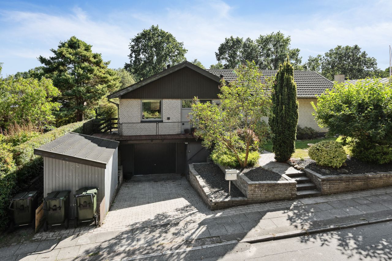 Fra stuen er der adgang til en udestue, der fungerer som en naturlig forlængelse af boligen - perfekt til de lange sommeraftener. Haven er lukket og ugeneret med direkte grænse mod en lille bæk, hvilket giver en helt særlig ro og privatliv.