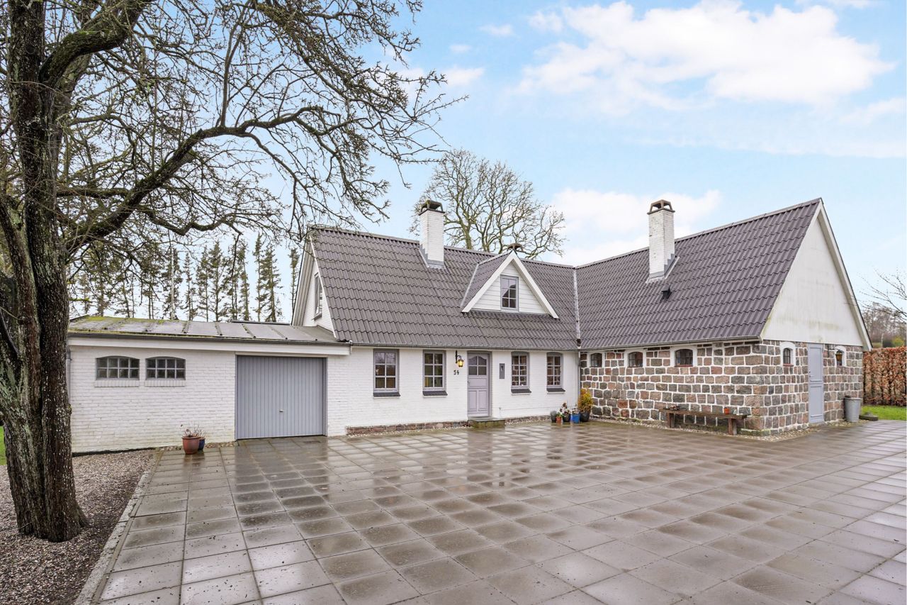 Indeholder i stueplan: Entré, flot Invita køkken/alrum med pejseindsats og gulvvarme og skøn stue. Fra