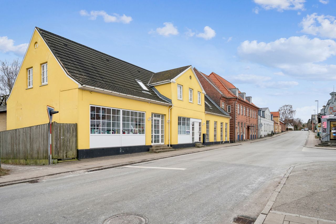 Her får du en sjælden kombination af privatbolig og erhverv under samme tag, hvilket åbner for mange spændende scenarier: liberalt erhverv, klinik, showroom, kontor eller værksted – kombineret med en rummelig bolig. Både bolig- og erhvervsdelen overtages fri, så du har fuld fleksibilitet fra dag ét.