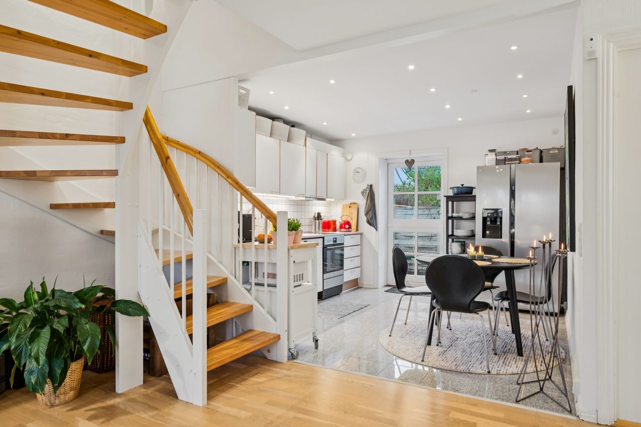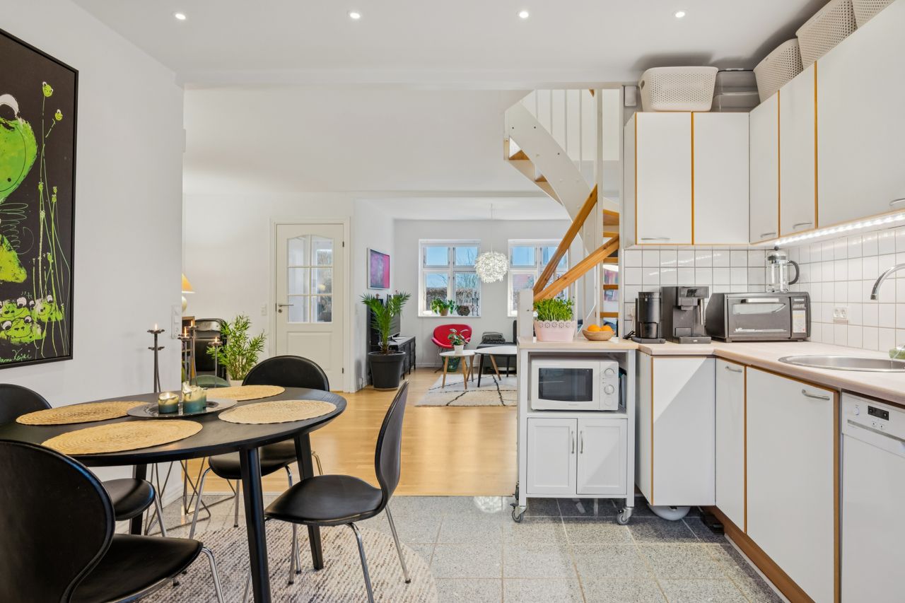 I et roligt og lukket boligområde, ca. 20 minutters kørsel fra Aarhus, ligger dette velindrettede rækkehus, som henvender sig til både par, børnefamilier og dem, som ønsker en veldisponeret bolig i rolige omgivelser.