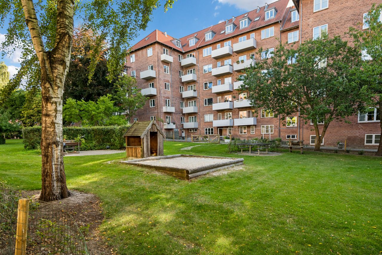 Her får du en lejlighed med super central beliggenhed inden for Ringgaden, hvor alt ligger i gå- og cykelafstand. På fem minutter står du i midtbyen med caféer, butikker og studieliv - og med både Botanisk Have, Den Gamle By og indkøb lige om hjørnet er hverdagen nem.