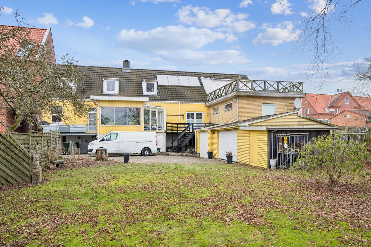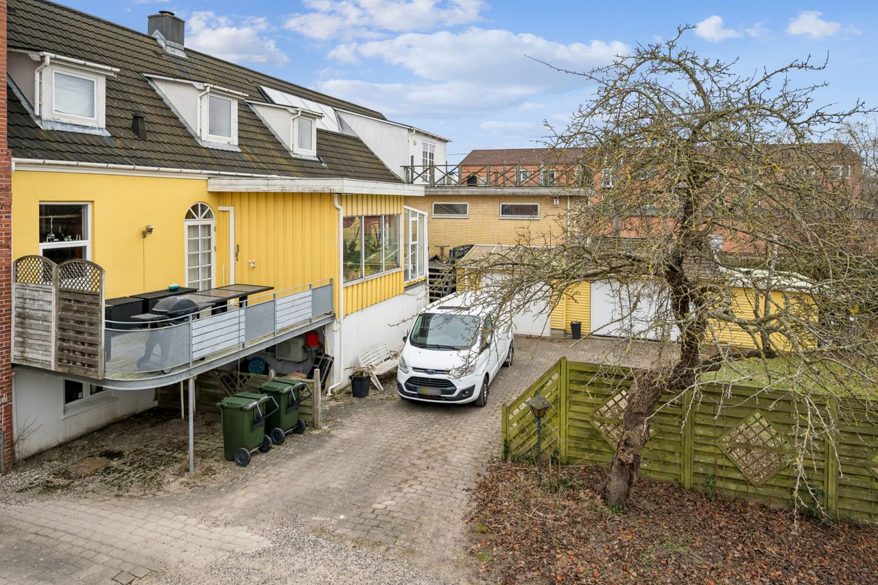 Her får du en sjælden kombination af privatbolig og erhverv under samme tag, hvilket åbner for mange spændende scenarier: liberalt erhverv, klinik, showroom, kontor eller værksted – kombineret med en rummelig bolig. Både bolig- og erhvervsdelen overtages fri, så du har fuld fleksibilitet fra dag ét.