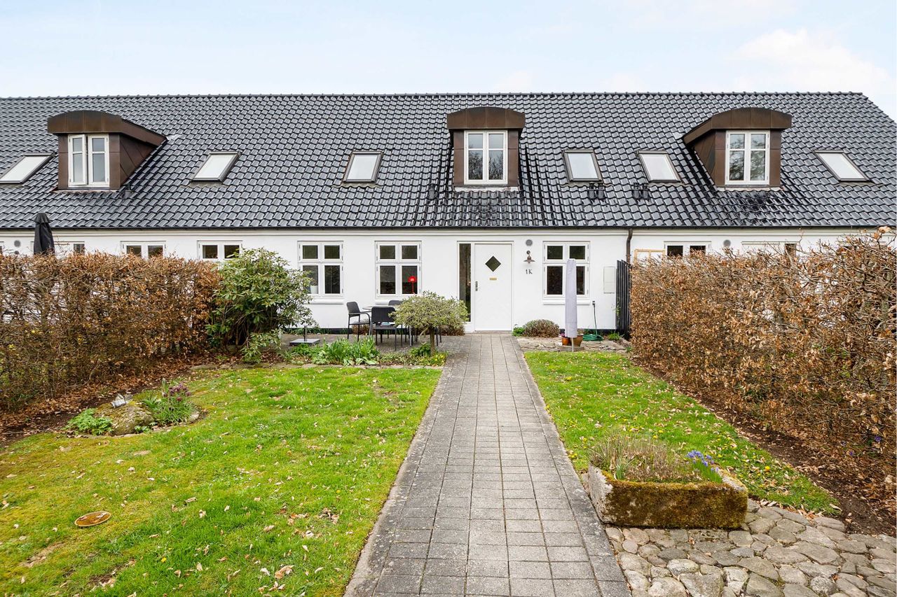 Her er således muligheden for at bo i hus men uden at skulle bruge al fritid i haven, og huset